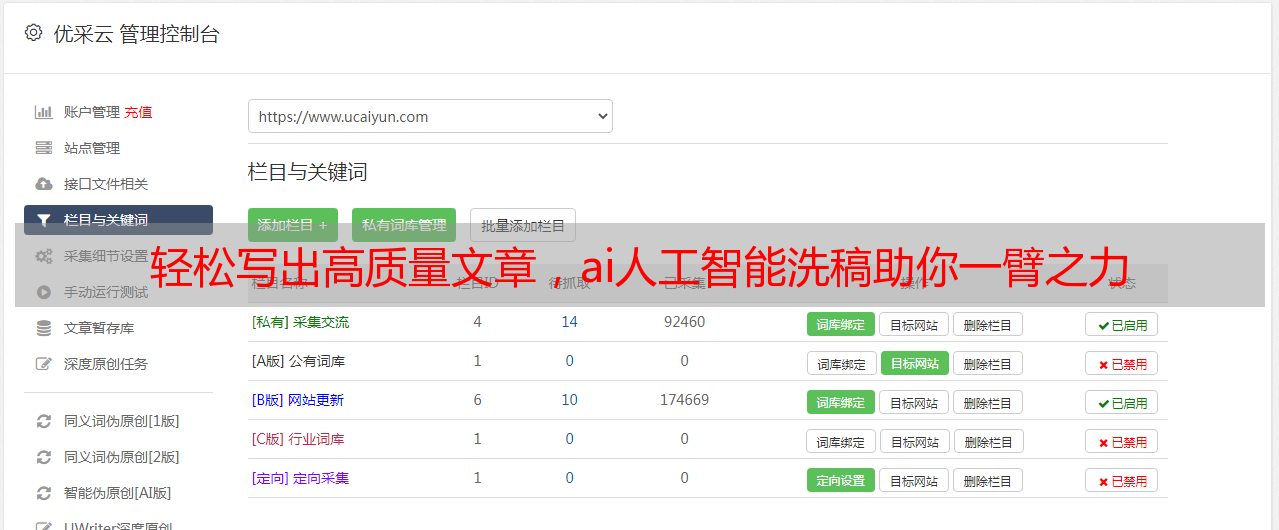 在选择ai人工智能洗稿软件时,我们需要考虑很多因素。其中,最重要的就是软件的质量和稳定性。在这方面,我推荐大家选择优采云。优采云是一款专业的文章写作工具,可以帮助你轻松完成高质量文章的写作。而且,它还提供了SEO优化功能,可以帮助你让文章更容易被搜索引擎收录和排名。