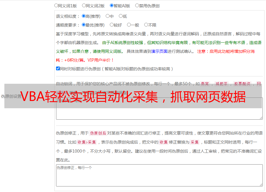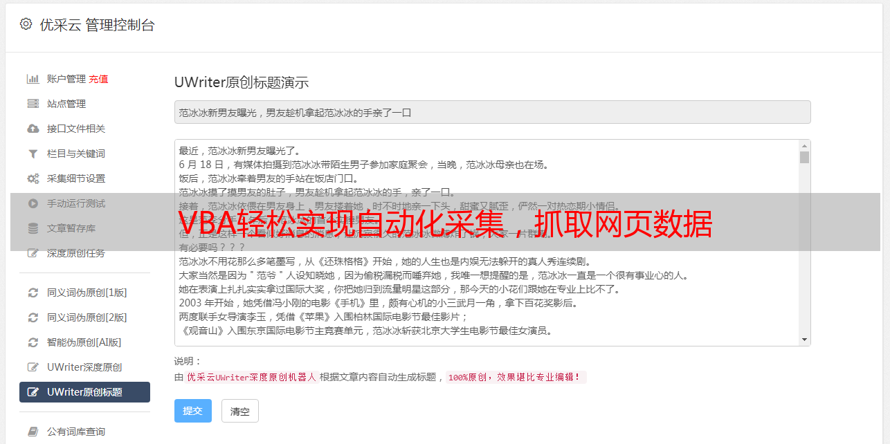 综上所述,使用VBA抓取网页数据是一种高效、灵活的数据采集方式。通过学习本文介绍的知识点,相信读者已经能够掌握VBA抓取网页数据的基本技能。如果想要进一步提升采集效率和质量,可以考虑使用优采云等专业工具进行数据采集与SEO优化。更多详情请访问官网:www.ucaiyun.