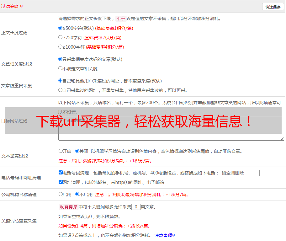 2.网站建设:可以通过url采集器获取相应网站的关键信息;