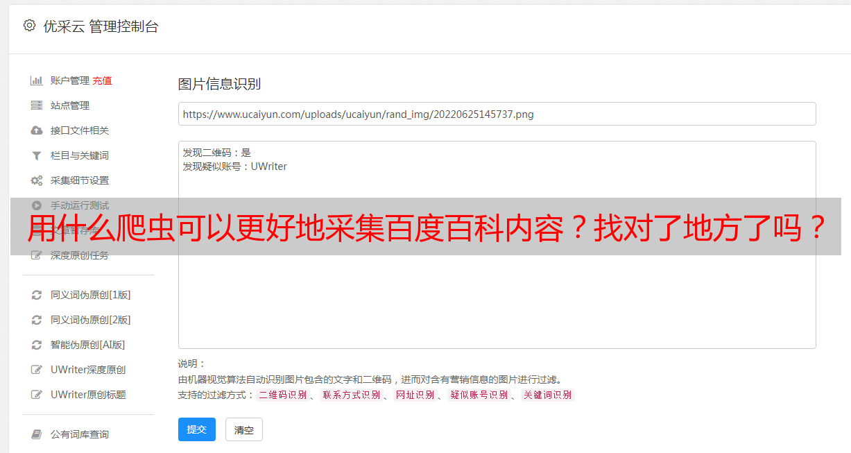 如果你想要更加高效地进行百度百科内容采集,那么我们推荐使用“优采云”这个工具。它是一个全自动化的数据采集平台,能够帮助用户实现快速、准确地采集数据,并且支持数据的定时更新。如果你想要更进一步了解“优采云”这个工具,可以访问它们的官方网站:www.ucaiyun.com。