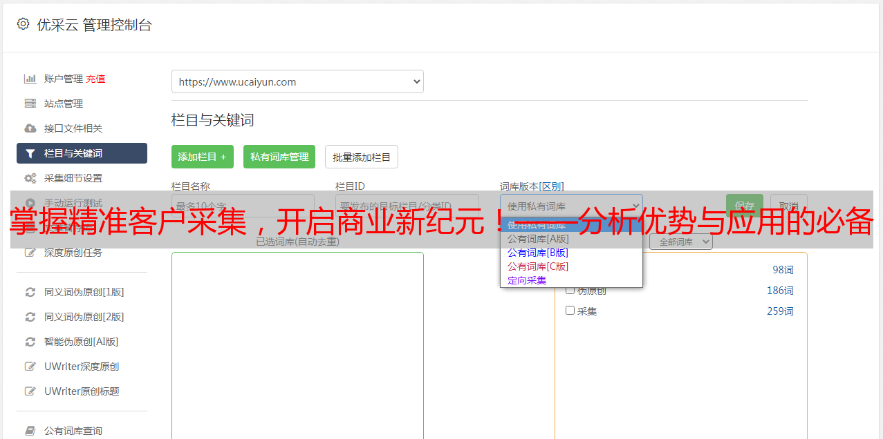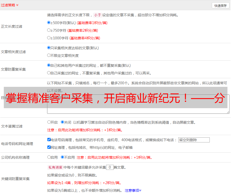 精准客户采集app已经成为现代企业实现高效精准营销的必备工具。通过选择一款优秀的精准客户采集app,企业可以快速获取到符合要求的潜在客户信息,并制定出更加有效的营销方案。同时,企业也需要通过SEO优化、定制化营销方案和多渠道推广等方式,实现真正的精准营销。如果您需要了解更多关于精准客户采集app的信息,请访问优采云官网:www.ucaiyun.com。