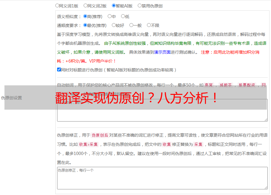 对于自媒体写作者来说,SEO优化是非常重要的。而对于伪原创来说,SEO优化也是一个重要的考虑因素。因为如果翻译后的文章不能满足搜索引擎的优化要求,那么就很难获得足够的流量。因此,在进行伪原创时需要注意到SEO优化这个问题。
