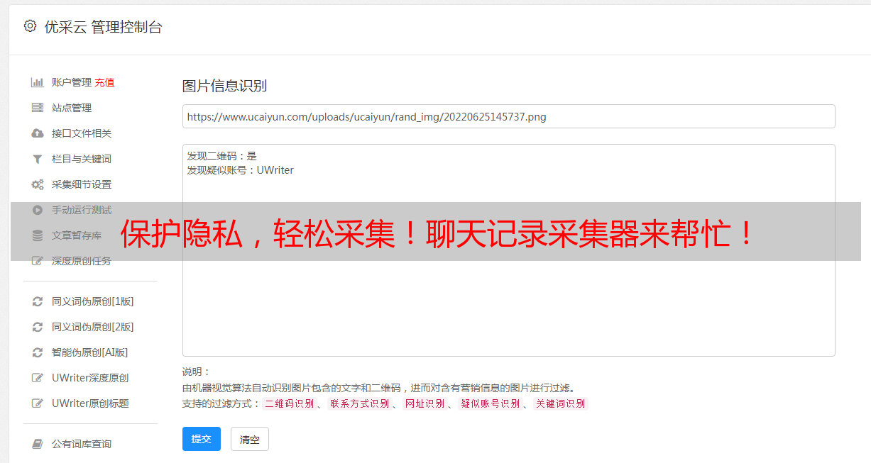 优采云 发布时间: 2023-04-10 02:10聊天记录是当今社交生活中不可或缺的一部分,它们不仅记录着我们的日常交流,还承载着我们的情感、思想和行为。但是,当我们需要查找某个特定的聊天记录时,却往往会发现这个任务异常困难。这时,聊天记录采集器就成为了我们的“隐私保险箱”。