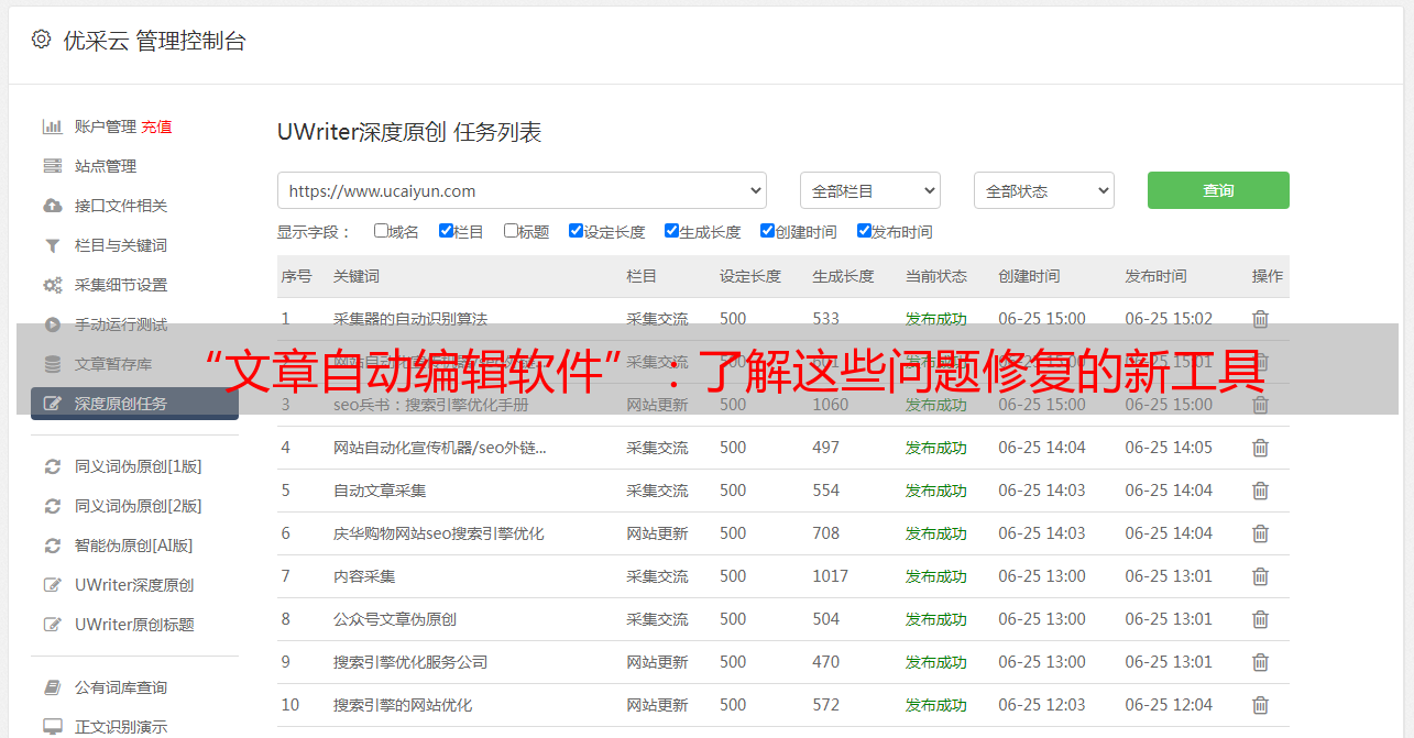 优采云是一款功能强大、易于使用、价格合理的将文章重新自动编辑软件。它提供了拼写检查、语法检查、标点符号检查、风格检查等多种功能,同时还提供了自然语言处理技术和人工智能算法。此外,优采云还提供了SEO优化和文本分析等高级功能,可以帮助作者更好地优化他们的文本。如果你正在寻找一款好的将文章重新自动编辑软件,那么优采云绝对值得一试。