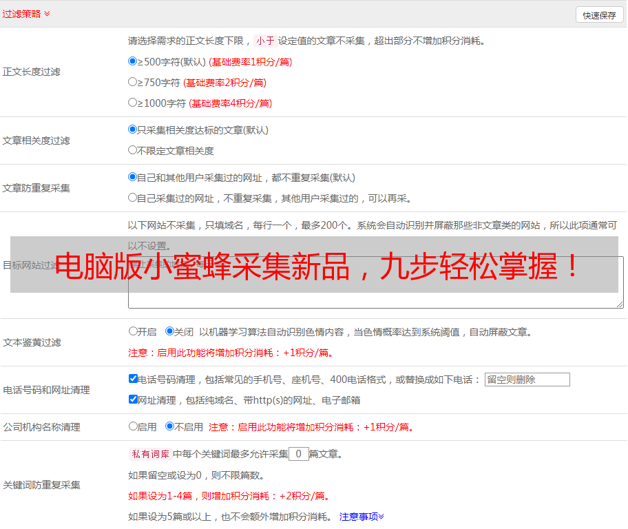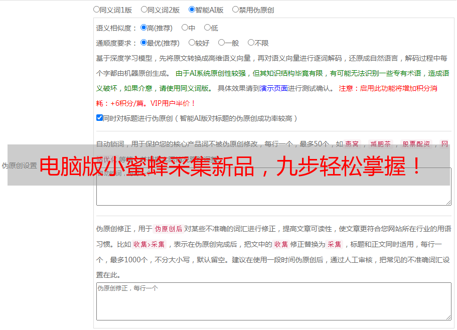 八、新款电脑版小蜜蜂采集的SEO优化功能