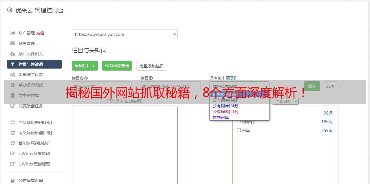 通过以上8个方面的分析,我们可以看出,在进行国外网站抓取时,我们需要遵循一定的规则和技巧,才能够获取到有效的信息。同时,我们也需要注意网站的反爬虫策略和SEO优化。如果您需要进行国外网站抓取,并且希望获取更多专业的帮助和支持,请访问优采云(www.ucaiyun.com),了解更多关于SEO优化和数据抓取的知识。