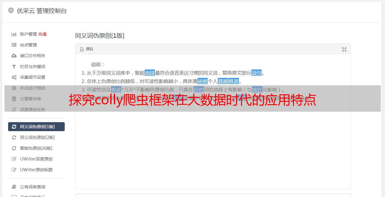 总之,colly爬虫框架是一款非常实用的爬虫框架,它具有高效、简单易用等优点,可以帮助企业或个人快速获取需要的数据。在使用colly爬虫框架时,需要遵守相关法律法规,注意防止反爬机制和并发量过大等问题。如果您想了解更多关于colly爬虫框架的信息,可以访问优采云官网www.ucaiyun.com。