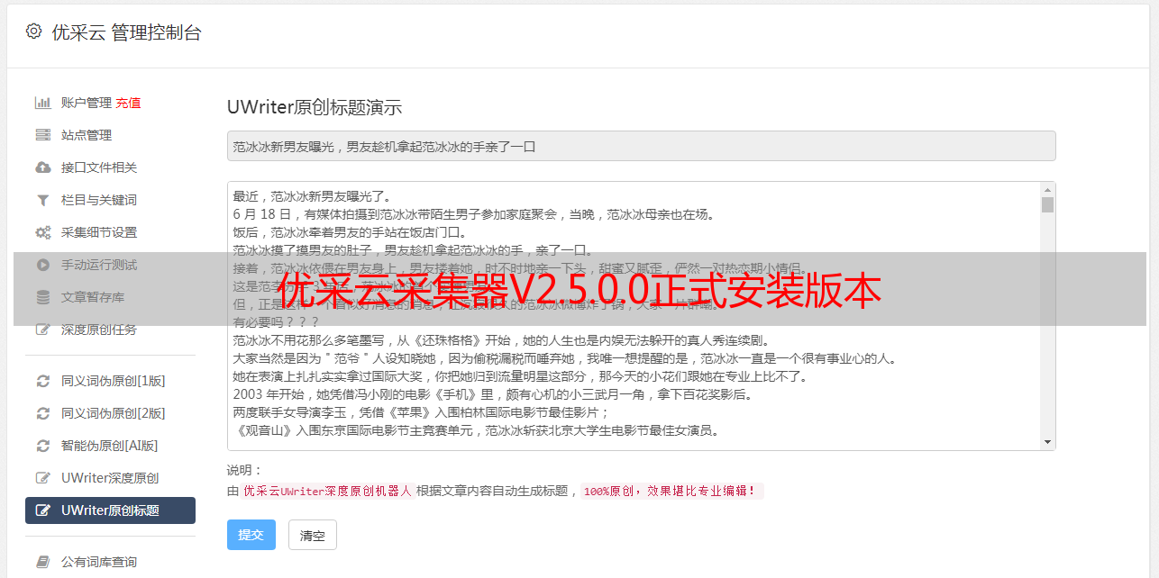 优采云 发布时间: 2020-08-07 23:57优采云采集器 V2是高效的Web信息采集软件,支持99%的网站数据采集. 它可以生成Excel表,api数据库文件和其他内容,以帮助您管理网站数据信息. 如果您需要使用此软件从指定的网页上采集数据.