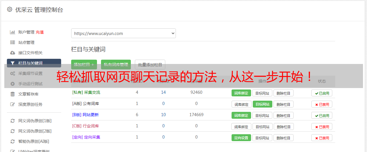 如果你觉得以上方法过于麻烦,也可以使用一些专业工具来抓取网页聊天记录。比如说,优采云就是一款非常好用的工具,它可以帮助用户轻松抓取各种类型的数据,并且还支持自定义规则和多种输出格式。