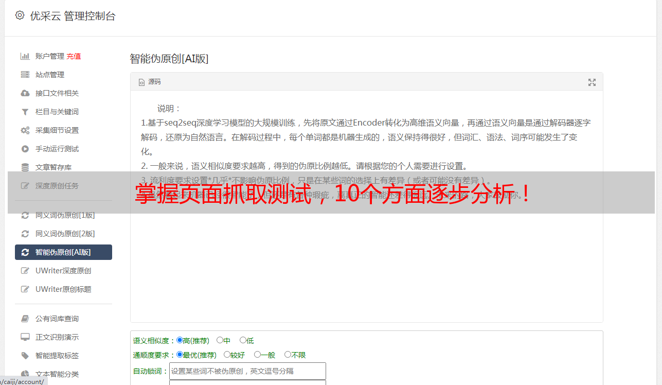 页面抓取测试是保证网站爬虫正常运行的重要步骤,需要对多个方面进行逐步分析和测试。优采云提供专业的数据采集、处理和存储服务,还可进行SEO优化,更多详情请登录www.ucaiyun.com了解。