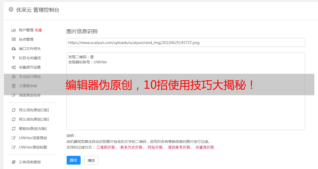 优采云 发布时间: 2023-04-14 19:57在当今信息爆炸的时代,作为一名自媒体人,写好文章并不容易。即使有了灵感,写出来的文章也可能因为内容雷同、表达方式过于平凡等问题而被搜索引擎所忽视。因此,编辑器伪原创成为了自媒体人的必备工具之一。本文将从以下10个方面逐一分析编辑器伪原创的优点和使用技巧。