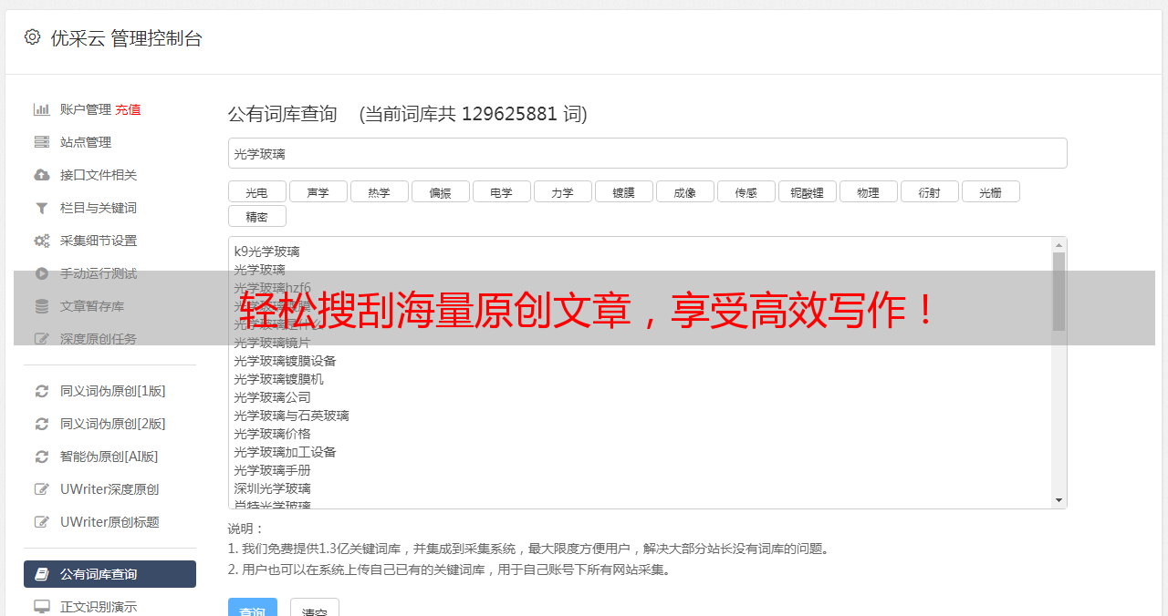 优采云 发布时间: 2023-04-17 00:23随着互联网的快速发展,越来越多的人开始关注自媒体,而自媒体的核心就是内容。但是,对于很多自媒体人来说,内容的创作是一件非常费时费力的事情。那么,有没有一种方法可以轻松获得海量原创内容呢?答案是肯定的,那就是批量搜刮文章。