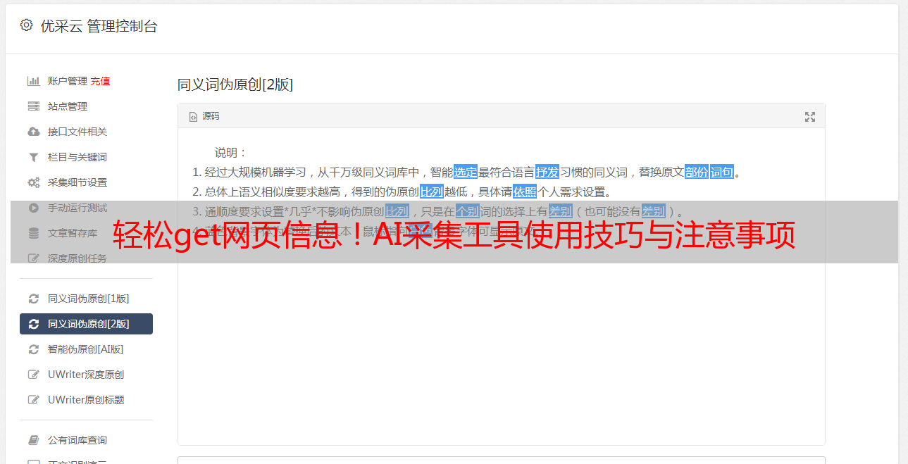 1.合法合规:在使用网页AI采集工具时,一定要遵守相关法律法规和道德规范,不得侵犯他人权益。