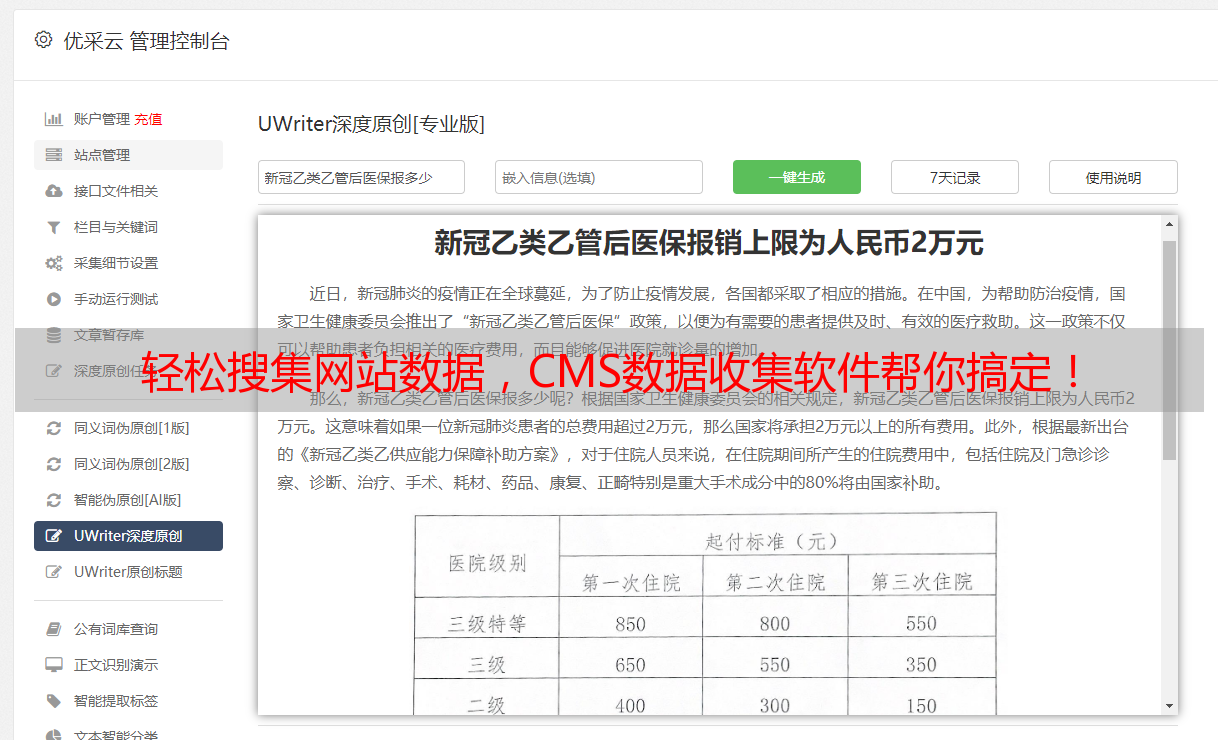 CMS数据收集软件是一款非常实用的工具,可以帮助企业快速、准确地采集各类网站上的信息,并进行分析和决策。如果你想了解更多关于该软件的信息,请访问优采云官网:www.ucaiyun.com。