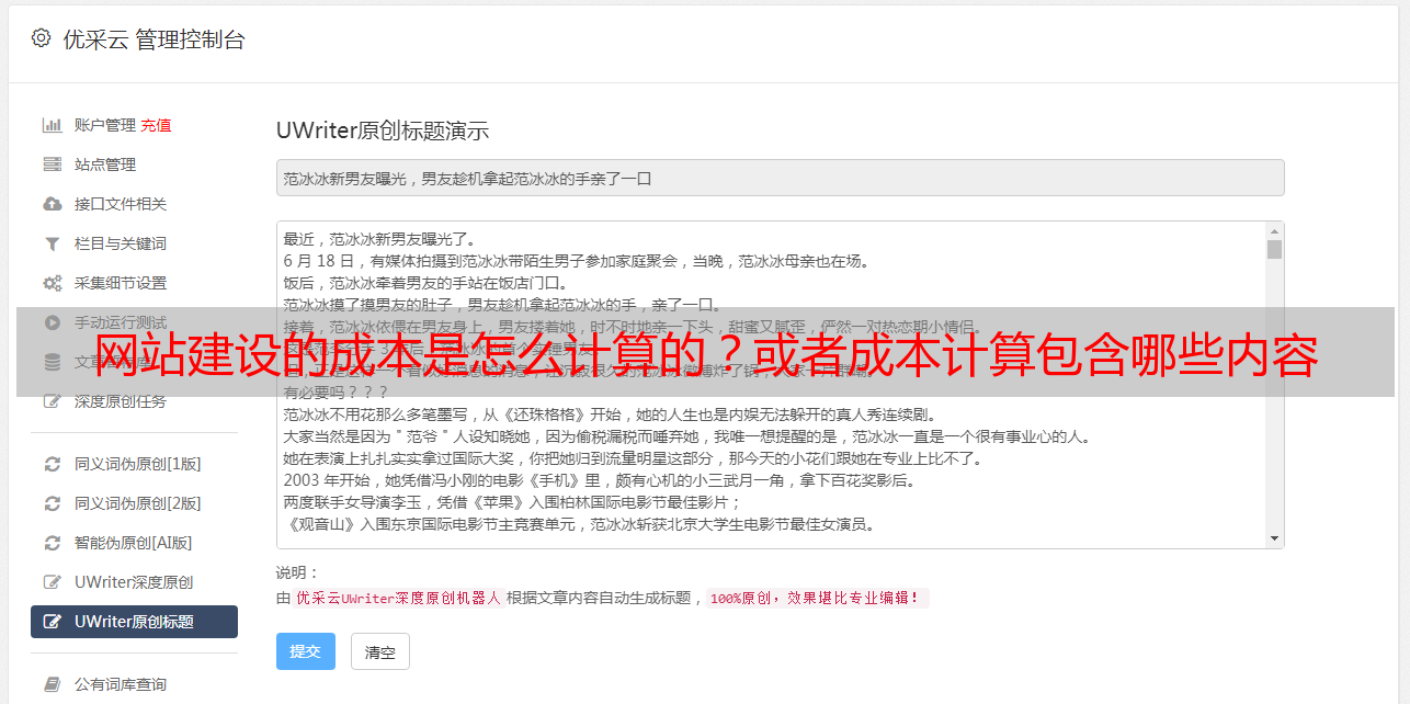 优采云 发布时间: 2021-06-13 23:27网站建设的成本是怎么计算的?或者成本计算包含哪些内容