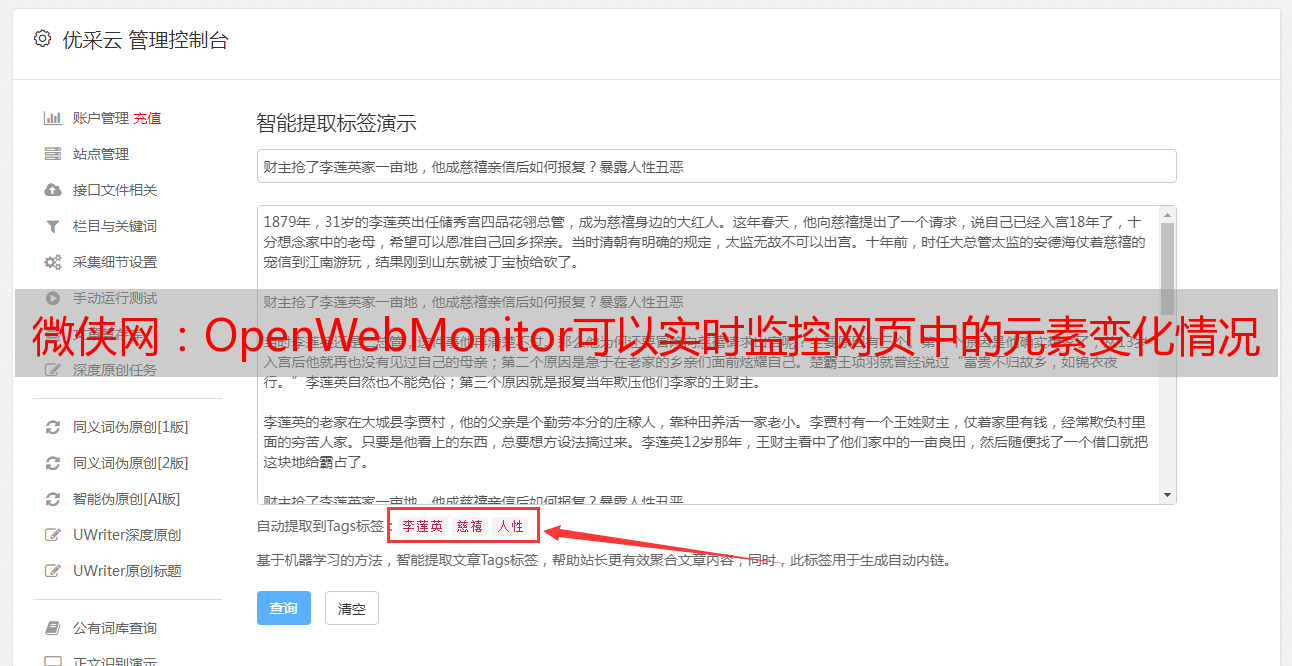 微侠网:OpenWebMonitor可以实时监控网页中的元素变化情况