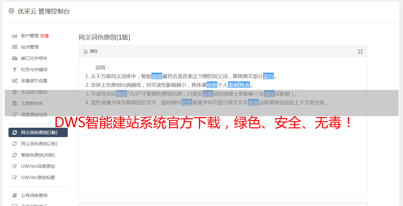 DWS智能建站系统官方下载,绿色、安全、无毒!