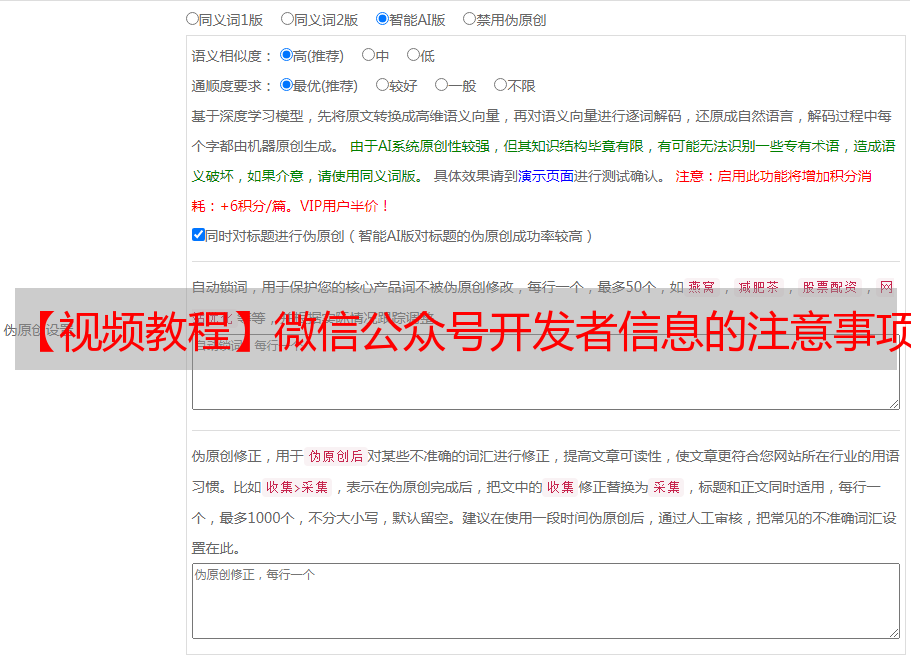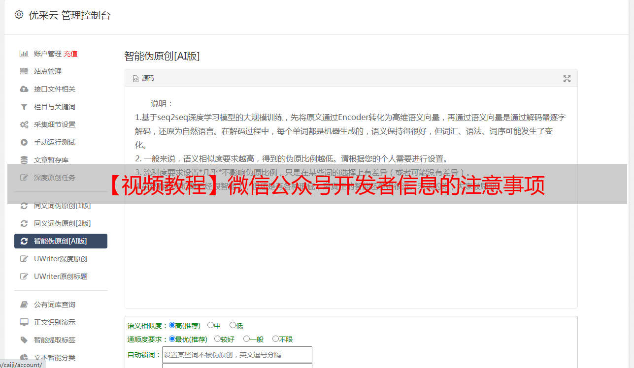 优采云 发布时间: 2021-06-14 05:25【视频教程】微信公众号开发者信息的注意事项