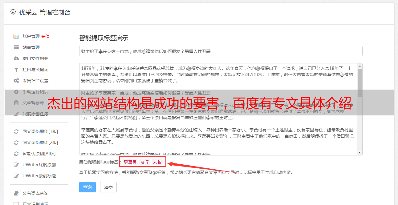 优采云 发布时间: 2021-06-14 07:24杰出的网站结构是成功的要害,百度有专文具体介绍