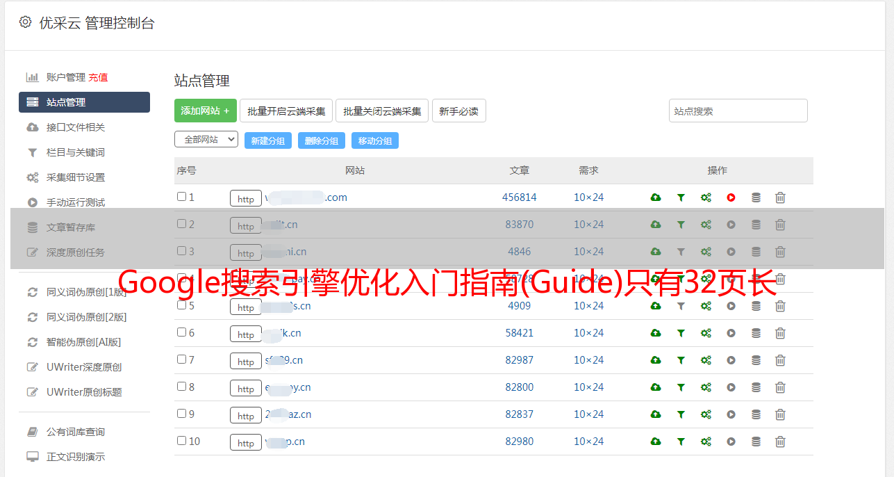 这份 Google 搜索引擎优化入门指南只有 32 页。但它涵盖了搜索引擎优化中的各种主题,包括基础知识、网站 结构、内容优化、搜索引擎检索和机器人、移动设备搜索引擎优化和数据分析。