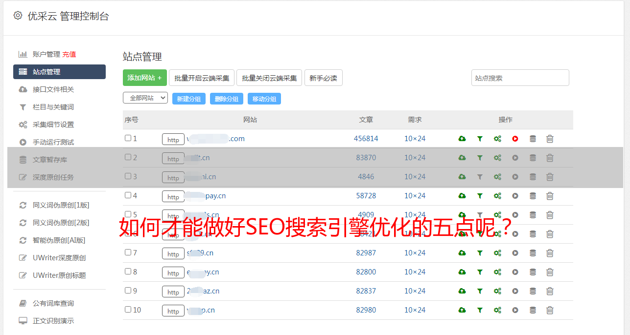 关键词Mining,结构优化,数据分析,原创内容,添加外链,是不是很简单,只要按照这五个方向,那么我保证你可以做的很好的排名,但是很少真正执行这五点的人,因为SEO是一个循序渐进的工作,考验人的耐心。你必须有足够的判断力、耐心和足够的勤奋。那你要想做好SEO,这五点怎么做好?