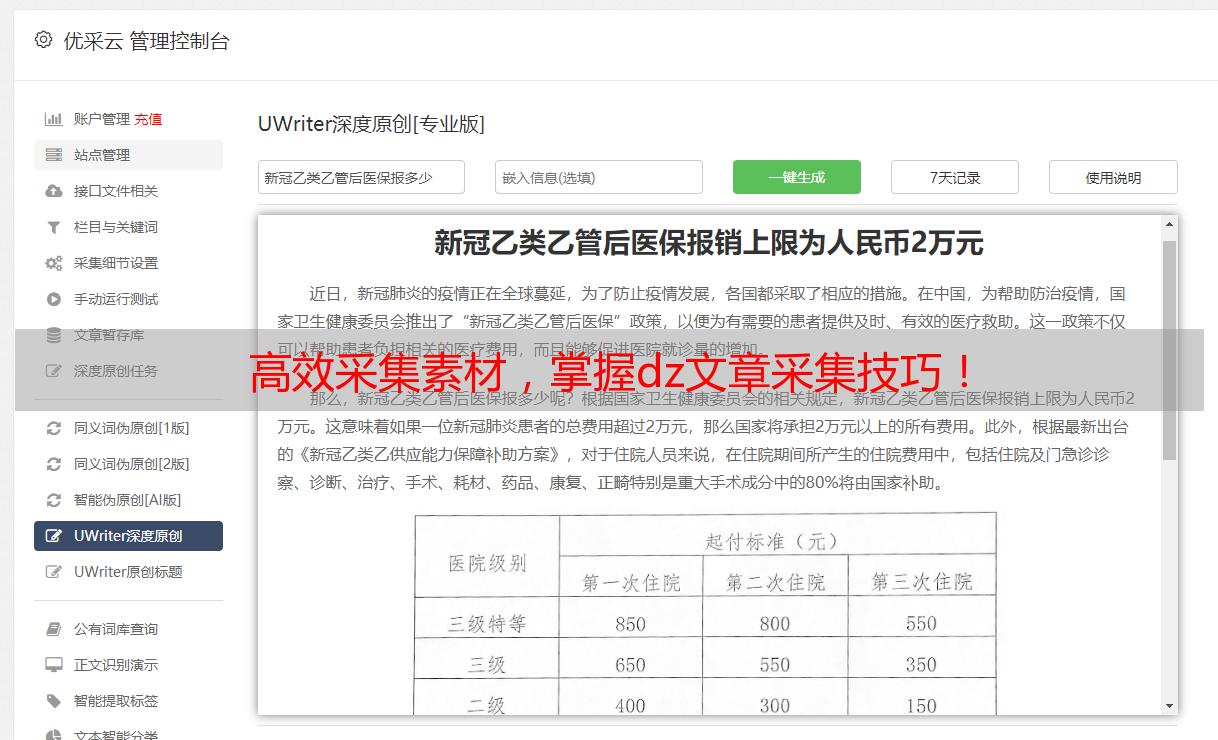 优采云 发布时间: 2023-05-08 00:23随着互联网的快速发展,内容创作已经成为了一个非常重要的行业。而对于内容创作者来说,最重要的就是获取到更多的素材和灵感。而在这个过程中,dz文章采集可以帮助你实现更高效的素材采集和整理。