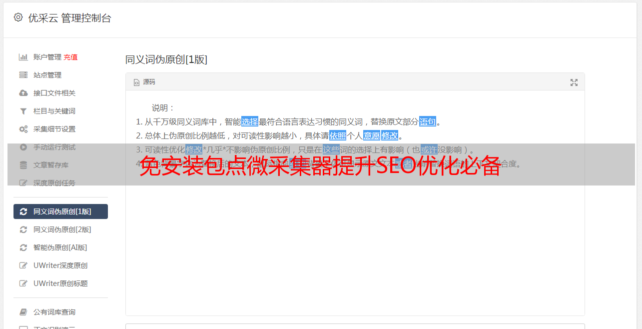 除了帮助用户进行信息采集外,点微采集器还具有一定的SEO优化功能。通过采集到的关键词、标签等信息,点微采集器可以帮助用户进行内容优化,提高文章的搜索排名,让更多人看到你的内容。