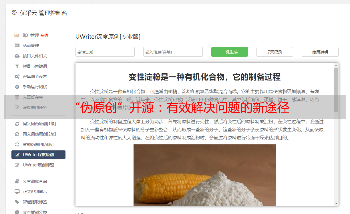 优采云 发布时间: 2023-05-09 15:28随着互联网时代的发展,内容创作已经成为了一种新的职业。但是,随之而来的问题也越来越多:内容质量参差不齐、原创难度大、抄袭现象严重等等。在这种情况下,伪原创开源技术应运而生,成为了解决这些问题的有效途径。