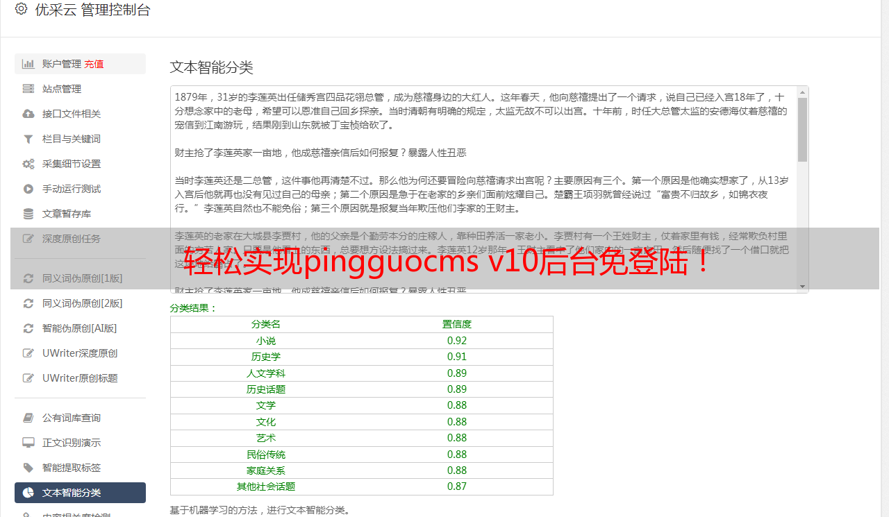 优采云 发布时间: 2023-05-09 19:38随着互联网技术的不断发展,企业网站建设已成为企业必不可少的一项工作。而pingguocms作为国内著名的开源CMS系统之一,其功能强大、易于使用、高度灵活的特点,深受广大用户喜爱。然而,在日常使用中,许多用户都会遇到一个问题:每次打开后台管理界面都需要输入账号密码,这既繁琐又浪费时间。针对这一问题,本文将介绍pingguocms v10免登陆方法,轻松实现后台管理。