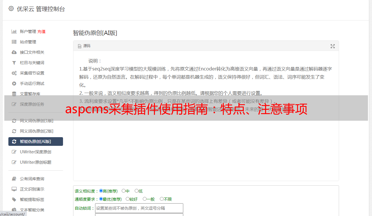 aspcms采集插件是一款非常实用的工具,可以帮助网站管理员快速高效地进行数据采集。在使用该插件时,需要遵守相关法律法规,同时也要注意数据的准确性和可信度。如果你想要让自己的网站更加优化,那么可以考虑使用优采云进行SEO优化,更多信息请访问www.ucaiyun.com。
