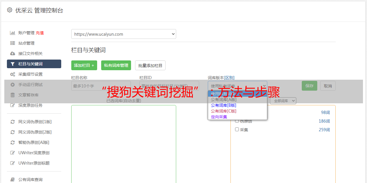 优采云 发布时间: 2023-05-10 08:27搜狗关键词挖掘是一种搜索引擎优化策略,可以帮助网站主快速找到热门关键词并进行网站优化。本文将从以下10个方面详细介绍搜狗关键词挖掘的具体方法和步骤。