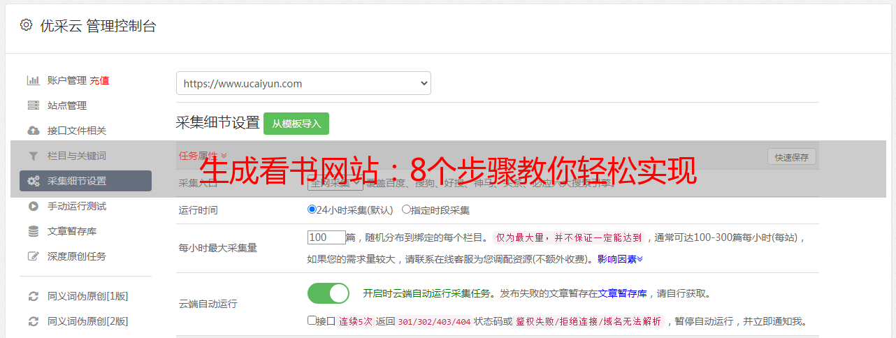 优采云 发布时间: 2023-05-10 18:57现在,随着人们生活水平的提高,人们愈发注重个人素养的提升。阅读是提高个人素养的有效途径之一。因此,建立一个看书网站,为广大读者提供优质的阅读资源,已经成为了当下互联网创业的热门选择。那么,如何轻松生成一款看书网站呢?本文将从以下8个方面进行逐步分析讨论。