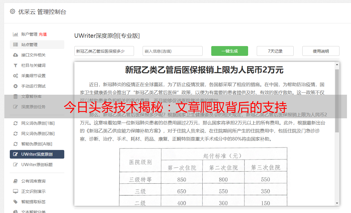 优采云 发布时间: 2023-05-11 15:47今日头条是当下最受欢迎的新闻资讯类app之一,每天都有海量优质内容在平台上发布。那么,这些内容是如何生成的呢?今天我们就来揭开今日头条背后的技术支撑——文章爬取。