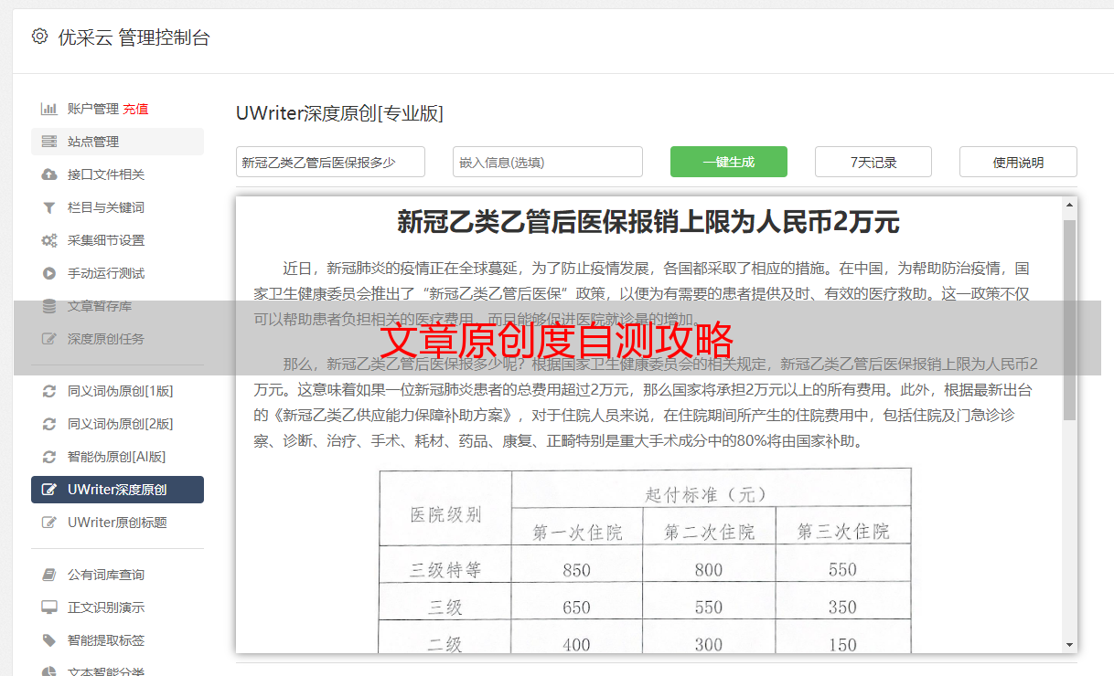 除了以上几点,还可以借助各种工具提高文章的原创度。比如,使用UWriter这样的人工智能机器人可以帮助作者快速生成高质量的原创文章;使用优采云等服务可以提供更加专业的SEO优化方案。