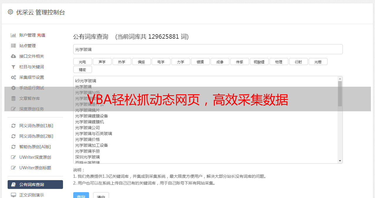 优采云 发布时间: 2023-05-17 16:47在数据分析和挖掘中,我们经常需要从各种网站上获取数据,但是很多网站的数据都是以动态网页的形式呈现,传统的静态网页爬虫已经不能满足需求。因此,本文将介绍如何使用VBA抓取动态网页数据,让数据采集更高效。