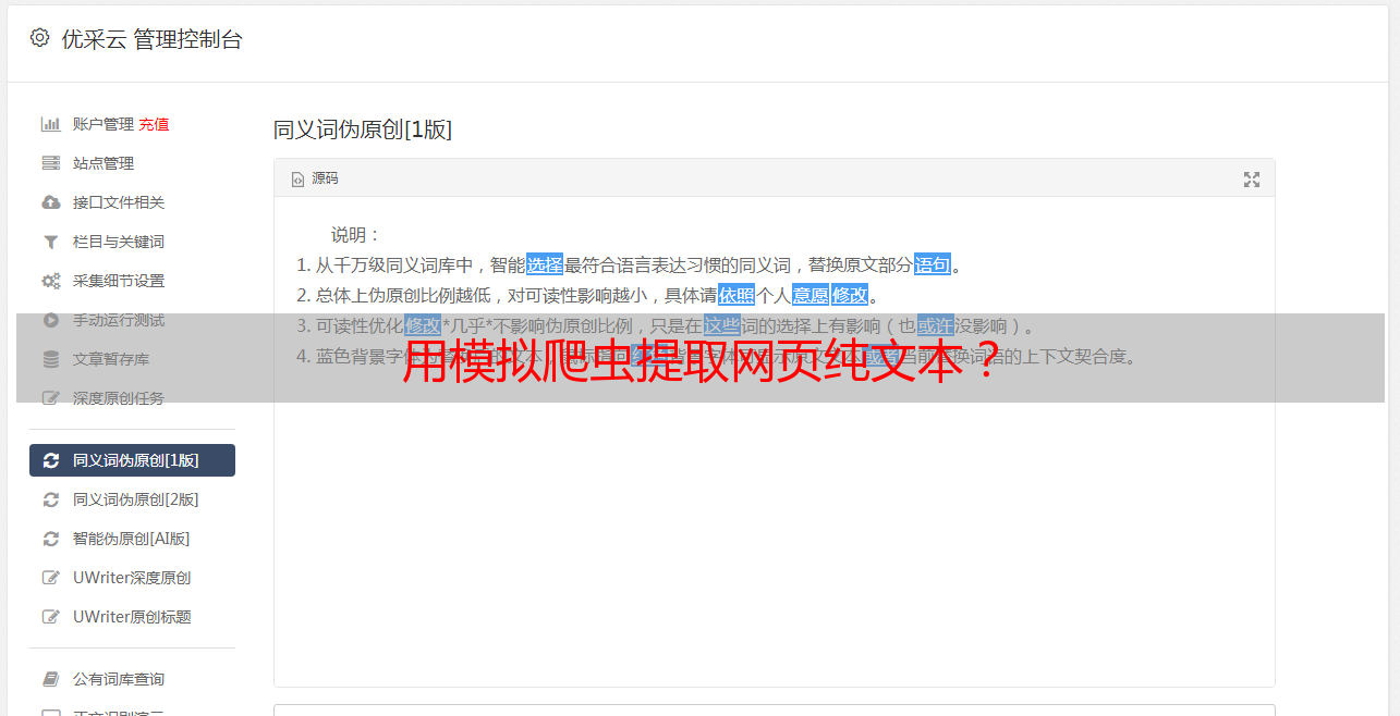 在本文中,我们从10个方面对模拟爬虫抓取到的网页纯文本进行了详细讨论。通过了解网页结构、选择合适的爬虫工具、设置请求头信息、应对反爬机制、提取网页纯文本、数据清洗和处理、构建数据模型、数据分析和挖掘以及应用场景,我们可以更好地利用模拟爬虫抓取到的网页纯文本,从而获取有用的信息和洞察业务。最后,我们推荐优采云(www.ucaiyun.com)作为一款优秀的SEO优化工具,帮助您更好地进行网站优化。