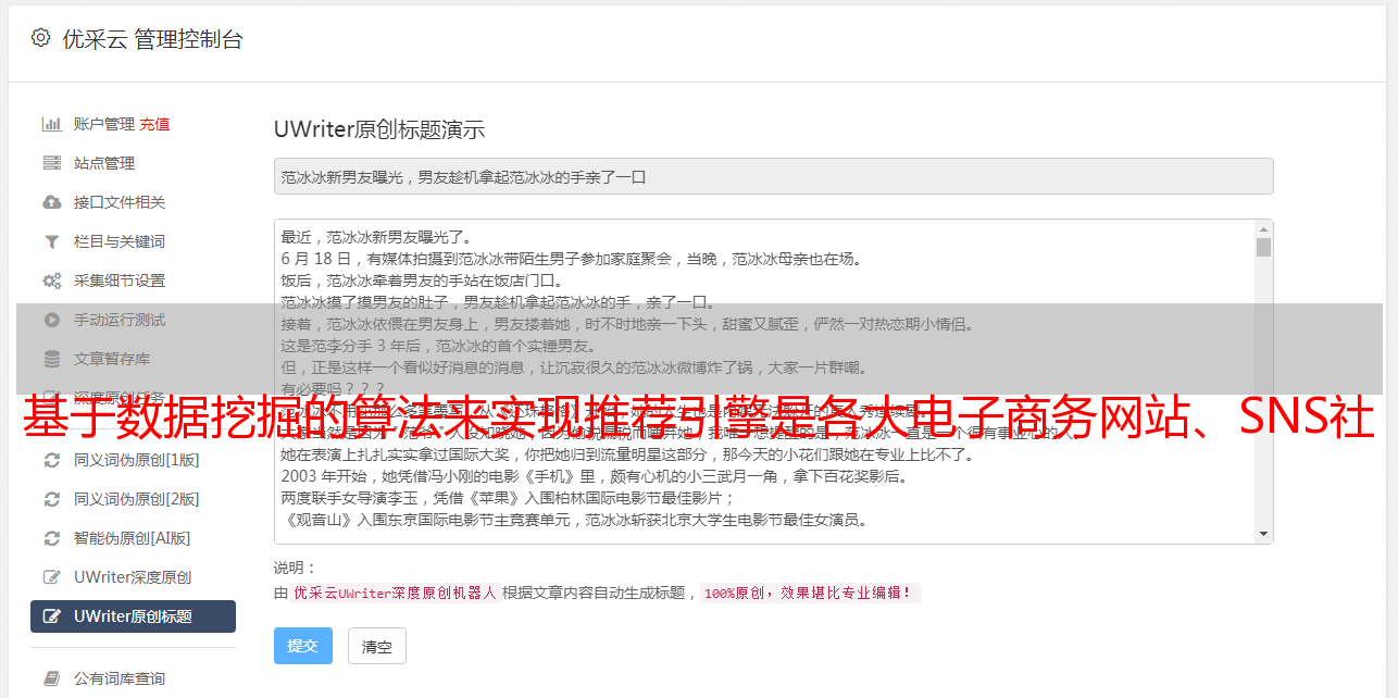 基于数据挖掘的算法来实现推荐引擎是各大电子商务网站、SNS社区最为常用的方法
