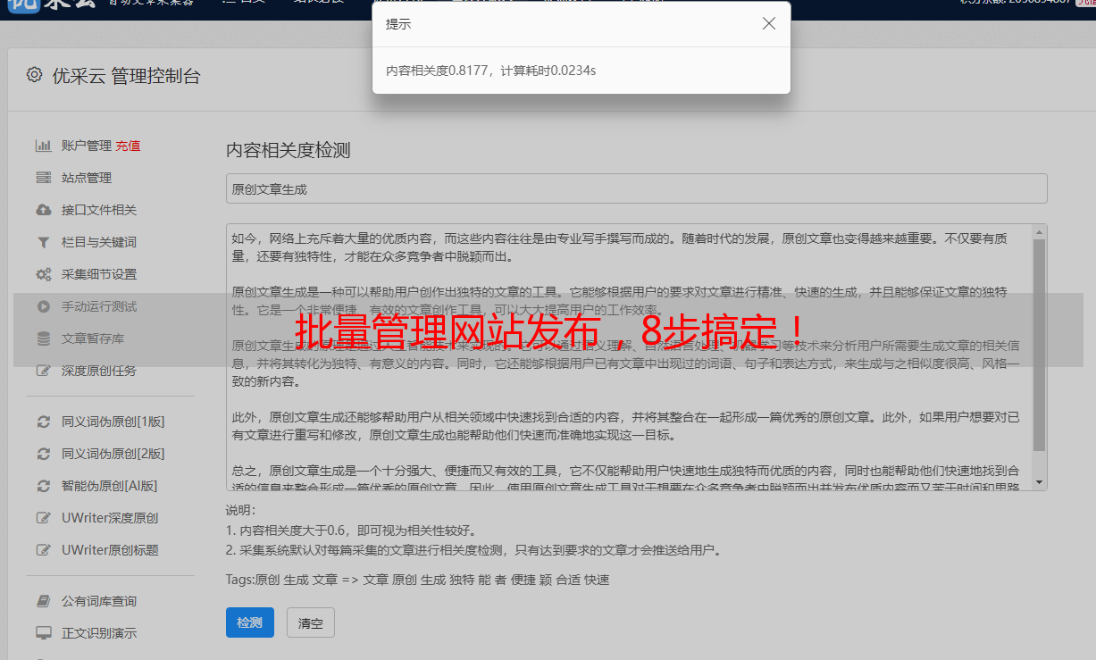 通过以上8个方面的分析讨论,相信管理员已经能够更好地掌握批量管理网站发布的方法和技巧。如果需要更加专业的帮助,可以考虑使用优采云提供的SEO优化服务,帮助网站更好地排名和推广。优采云,SEO优化,www.ucaiyun.