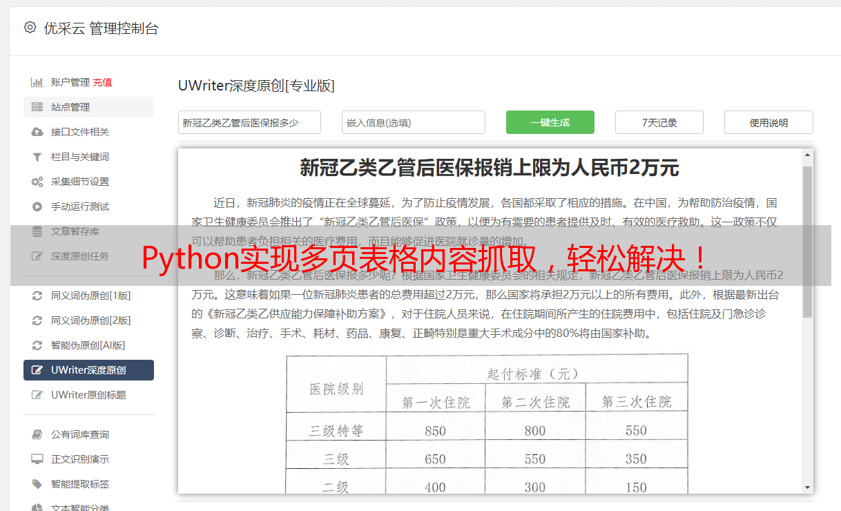 优采云 发布时间: 2023-06-01 21:47随着互联网的快速发展,数据分析和挖掘成为了各行各业必不可少的工作内容。而网页表格中的数据则是我们获取信息的重要来源之一。但是多页网页表格内容抓取,手动复制粘贴数据往往效率低下、易出错,因此本文将介绍如何使用Python实现多页网页表格内容抓取。