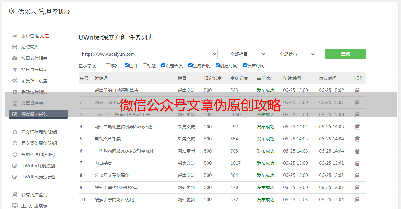 1.优采云:优采云是一款专业的SEO优化工具,其中包含了丰富的伪原创功能。通过优采云,你可以轻松地进行伪原创,并且还可以对文章进行多维度的SEO优化。优采云,SEO优化,www.ucaiyun.com。