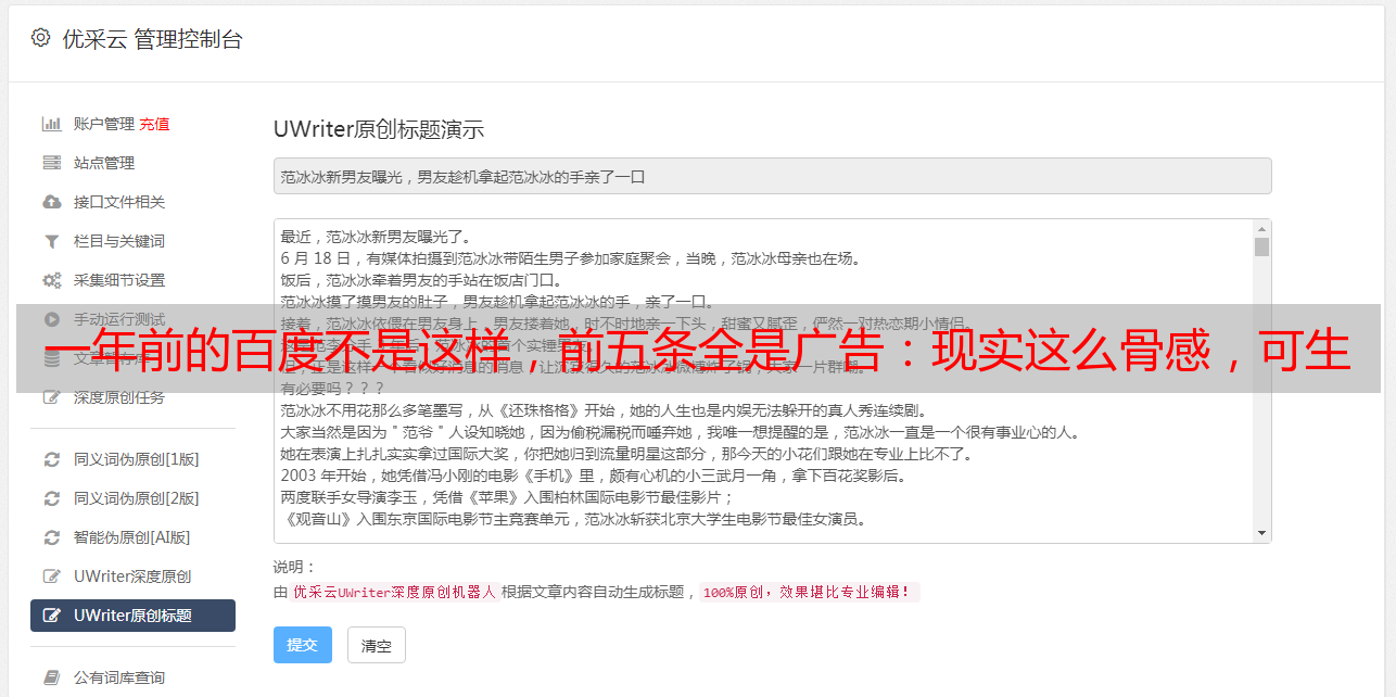 *敏*感*词*部分为原作者展示百度搜索结果的部分,搜索结果引出百度自己的内容