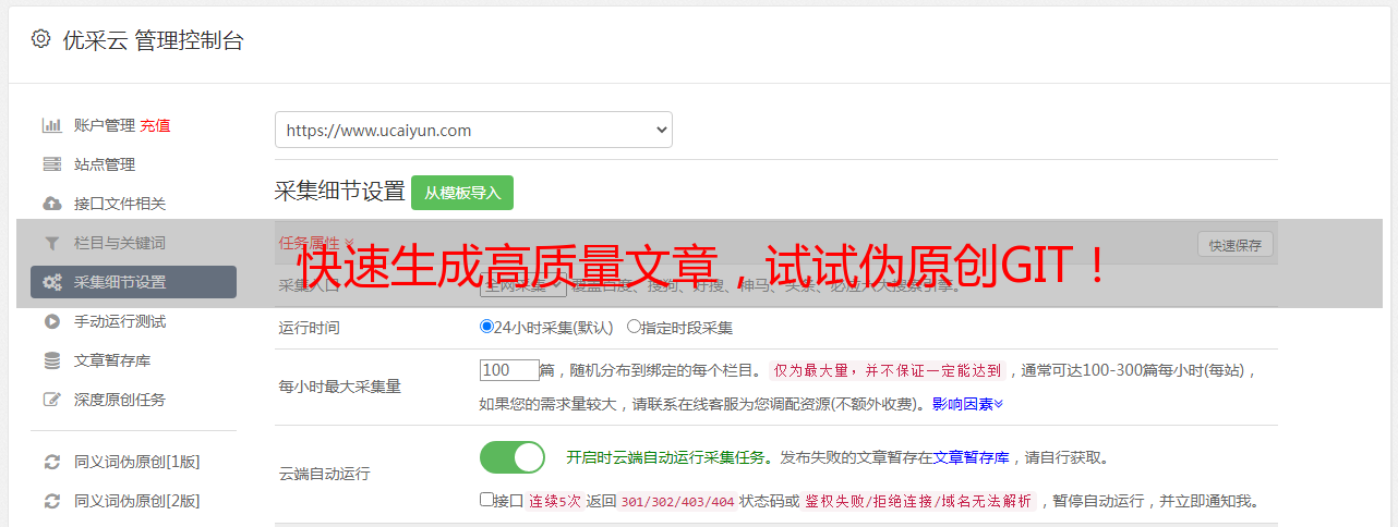 5. SEO优化:伪原创GIT支持自定义关键词、标题等信息,可以为文章进行SEO优化。