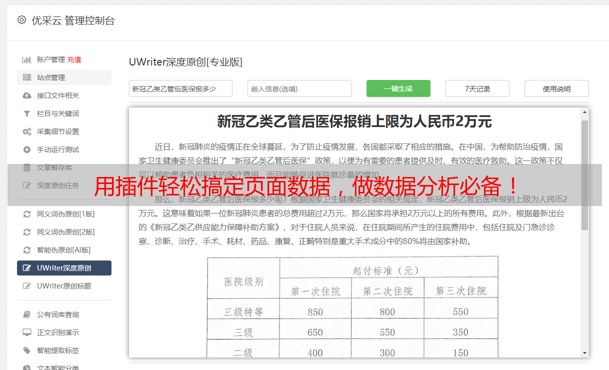 优采云 发布时间: 2023-06-24 12:51最近我使用了一款非常好用的浏览器插件,可以帮助我轻松地抓取各种网页上的数据。这个插件真是太棒了,让我的工作效率大大提升。在这篇文章中,我将分享一下我对这个插件的亲身感受,并详细介绍如何使用它来抓取页面数据。