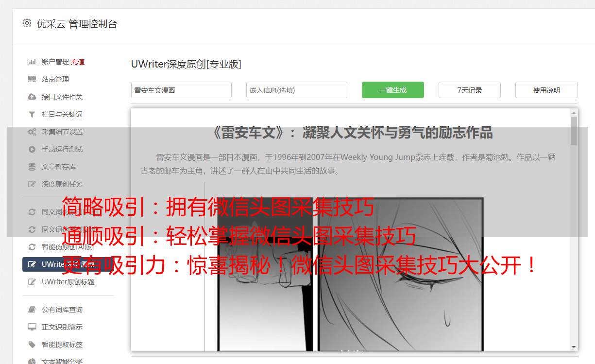通过以上八个方面的分析和讨论,我相信大家对微信头图采集有了更深入的了解。只有制作出高质量、有吸引力的微信头图,才能吸引读者点击并传播文章。希望这些经验和技巧能对大家写作工作有所帮助。