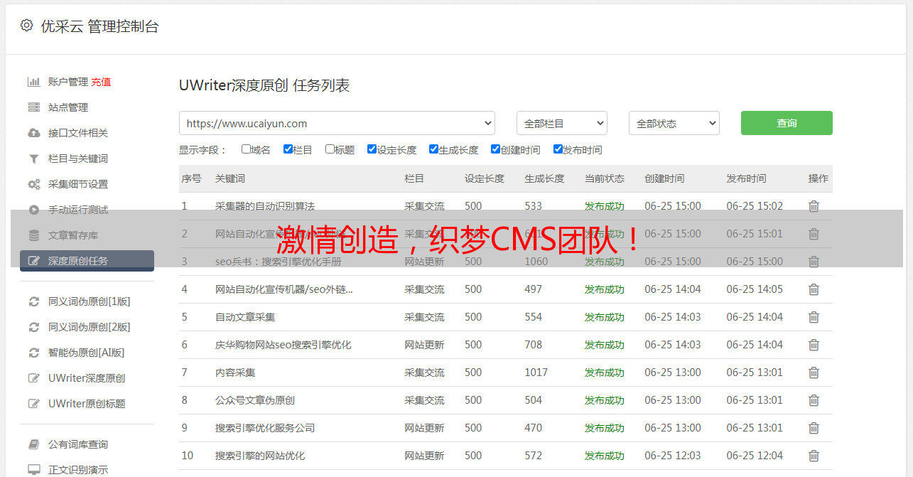 优采云 发布时间: 2023-06-29 18:42织梦CMS开发团队是一个充满*敏*感*词*和创造力的团队,致力于为用户提供一流的网站建设和内容管理系统。他们以技术为驱动力,以用户需求为导向,不断探索创新,为客户打造出独一无二的在线平台。在这篇文章中,我们将深入了解织梦CMS开发团队的故事,了解他们在行业中的地位和贡献。
