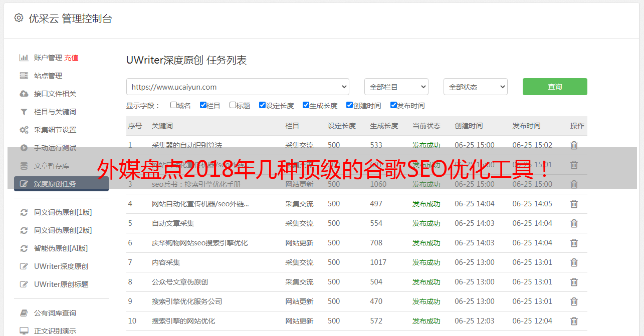优采云 发布时间: 2021-06-15 19:19外媒盘点2018年几种顶级的谷歌SEO优化工具!