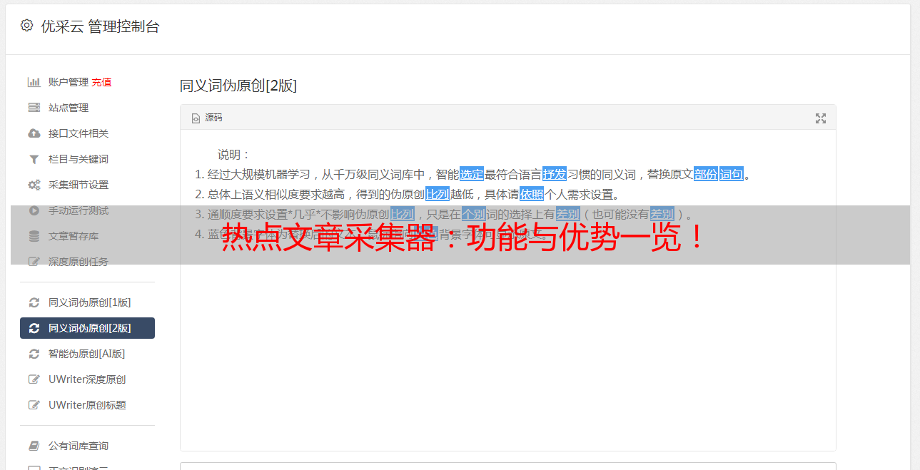 6.优采云平台:热点文章采集器与优采云平台紧密结合,为用户提供更加便捷的使用体验。通过优采云平台,用户可以随时随地使用热点文章采集器,并进行数据管理和分析。