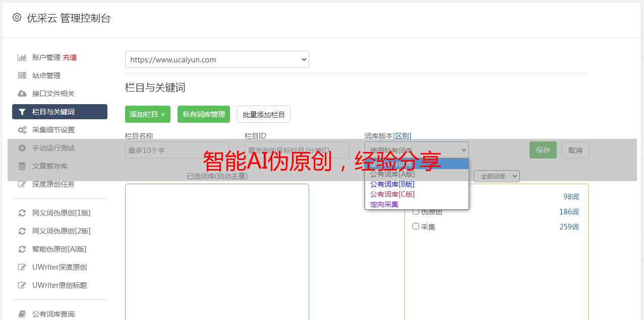 以上就是关于使用智能AI伪原创文章*敏*感*词*的经验分享。希望这些技巧能够对你在内容创作中有所帮助。如果你想了解更多相关信息,可以访问优采云(www.ucaiyun.com),他们提供专业的SEO优化服务和内容创作支持。祝你在内容创作道路上取得更大的成功!