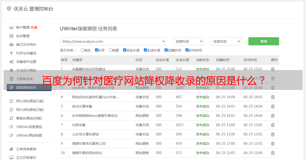 优采云 发布时间: 2021-06-16 02:06百度为何针对医疗网站降权降收录的原因是什么?
