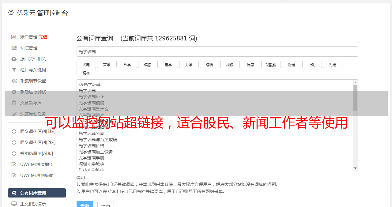 网站update 监控工具可以监控网站hyperlinks。当有更新时,它会立即提醒并记录。帮助您从海量的网络信息中获取有用的信息,第一时间获取最准确的信息。适合投资者、记者等